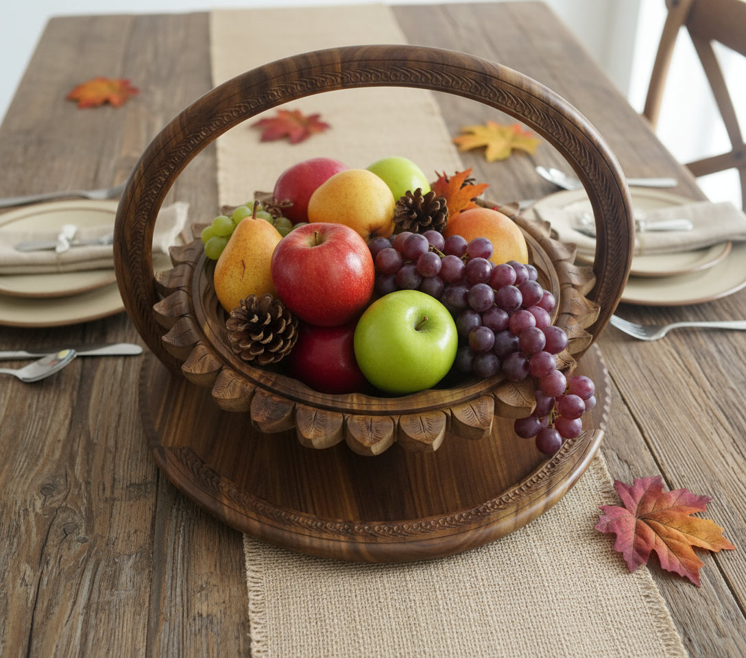 When laid flat the basket serves as a trivet or hot plate, perfect for saving space and easy storage. Simply lift the handle, and it transforms into beautifully finish basket, ideal for holding fruits, nuts, candy or as eye catching centerpiece for your table.