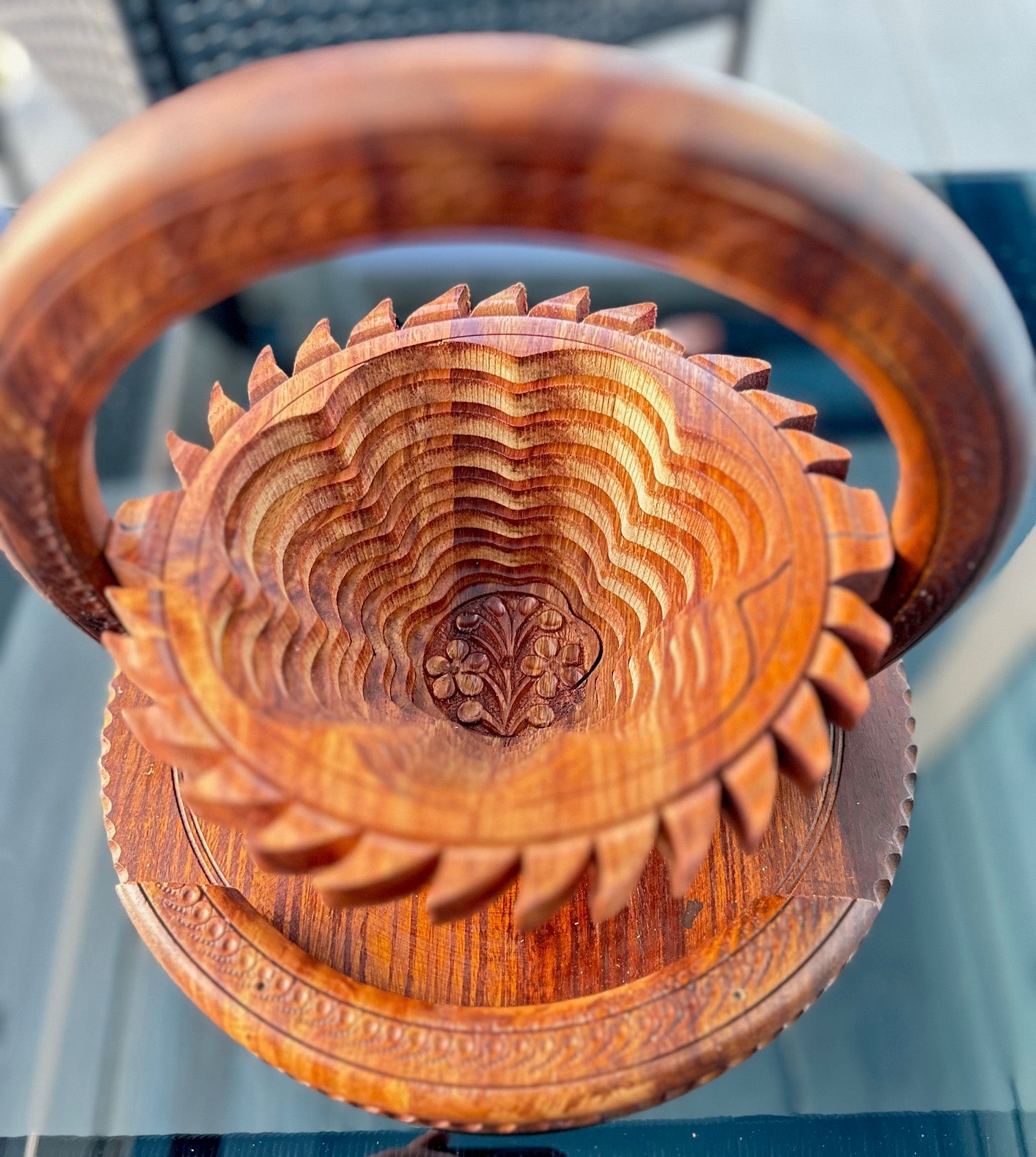 Every basket is crafted from a single piece of Rosewood and showcases hours of detailed carving and fine workmanships.