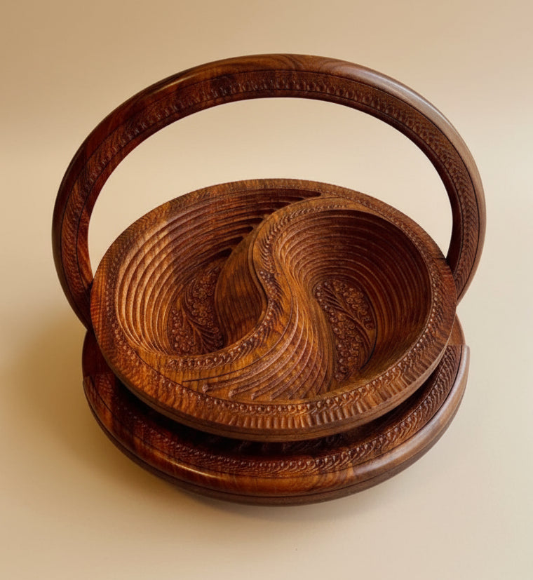 Every basket is crafted from a single piece of Rosewood and showcases hours of detailed carving and fine workmanships.
