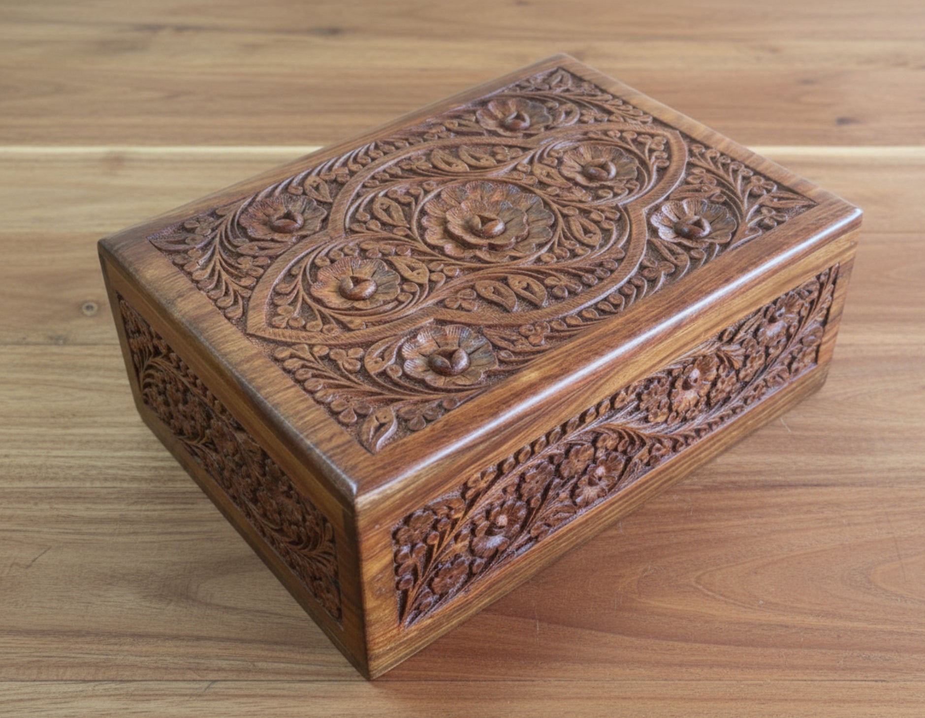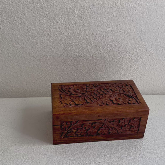 Unlock the beauty and mystery of this hand carved secret lock box, each piece is individually carved from rich, natural rosewood.